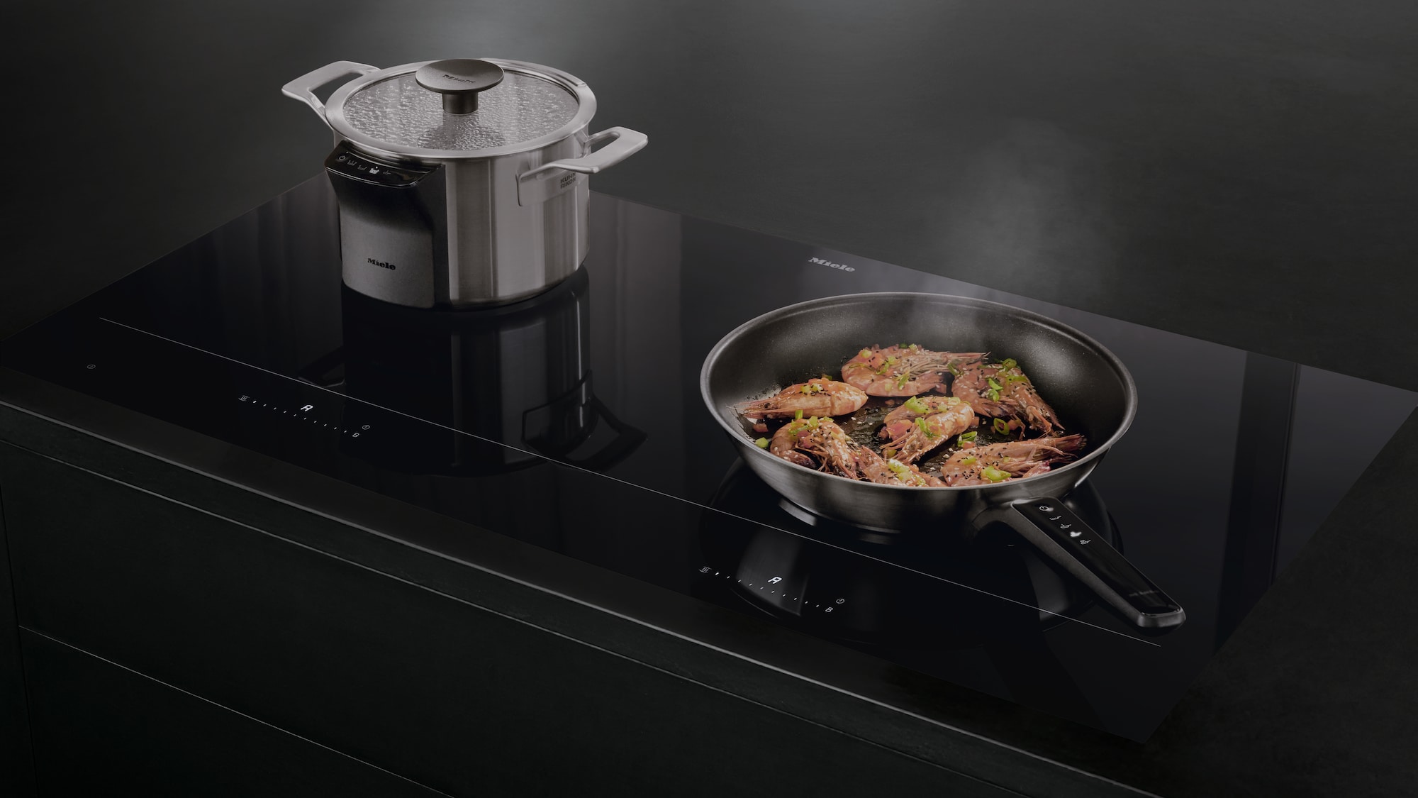 Les taques de cuisson à induction Miele avec hotte aspirante intégrée se distinguent par un design élégant et de grande qualité, qui complète sans peine toutes les cuisines.