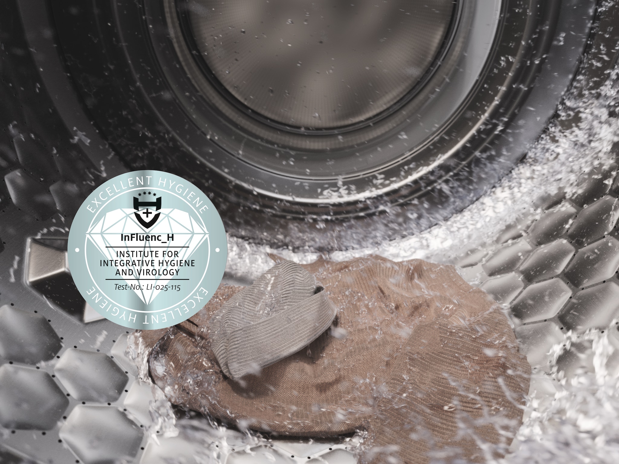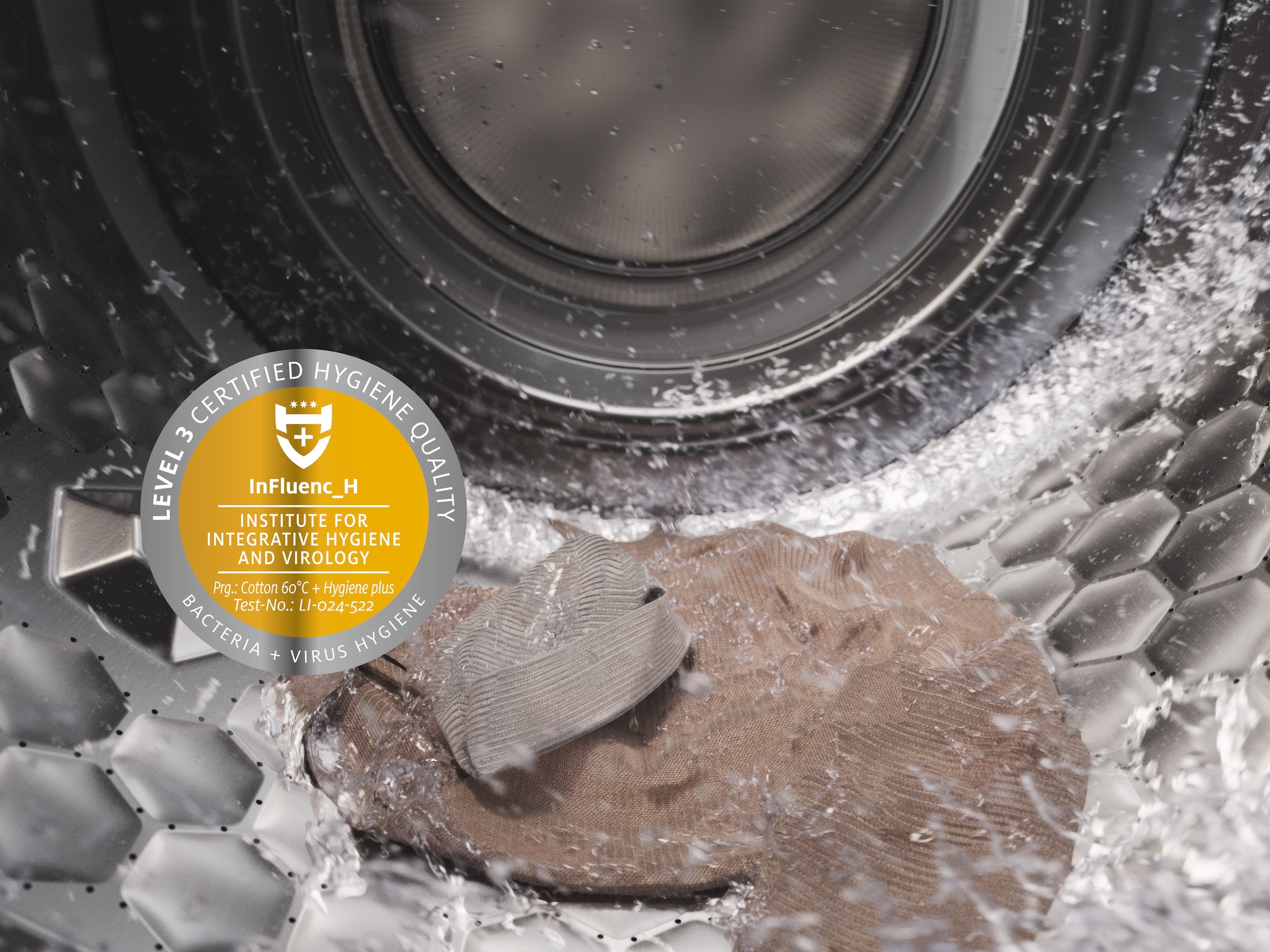 - 8.Getest door de universiteit van Albstadt-Sigmaringen en onderscheiden met het Excellent Hygiene-label van het Instituut voor integratieve hygiëne en virologie (InFluenc_H). Geldt voor alle modellen met TwinDos® en PowerWash in het programma Katoen hygiëne 60 °C met AllergoWash extra in combinatie met Miele UltraPhase en in het onderhoudswasprogramma met de Miele IntenseClean-machinereiniger. De programma's QuickPowerWash 60 °C en QuickPowerWash 40 °C bereiken ook gecertificeerde hygiënenormen bij gebruik in combinatie met Miele UltraPhase. Geteste bacteriën zijn onder meer E. coli en omhulde virussen (bijv. coronavirus) en niet-omhulde virussen (bijv. norovirussen en adenovirussen).