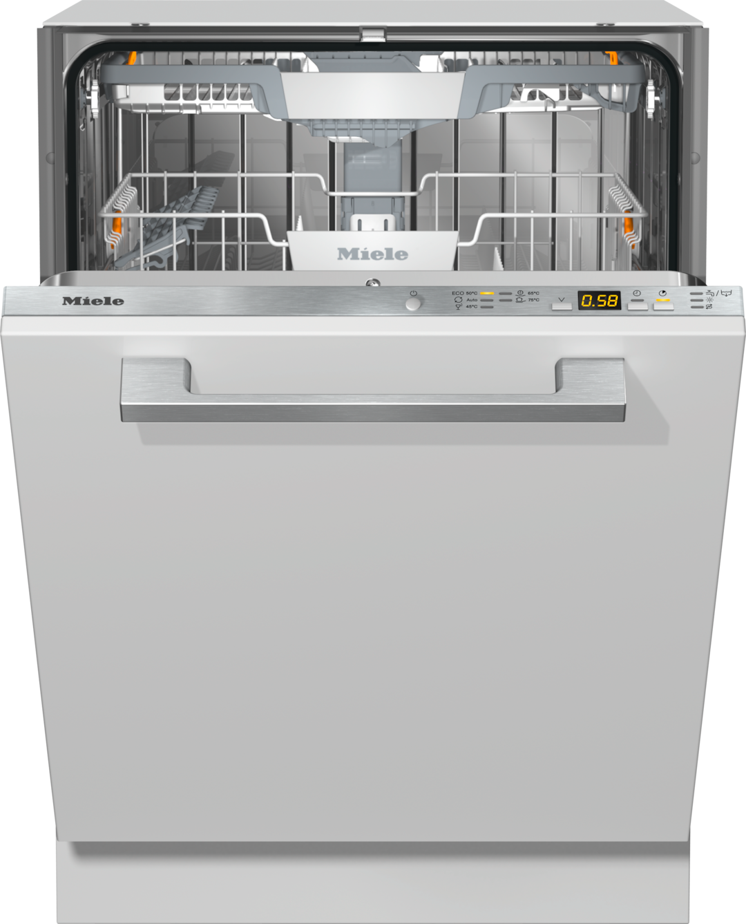 - 7.Au cours de la phase de développement des séries de lave-vaisselle G 5000 et G 7000, Miele a testé les modèles et les organes électriques au cours de 5600 cycles de lavage (= 280 cycles de lavage par an sur une période de 20 ans) dans différents programmes. En savoir plus : miele.be/20ans