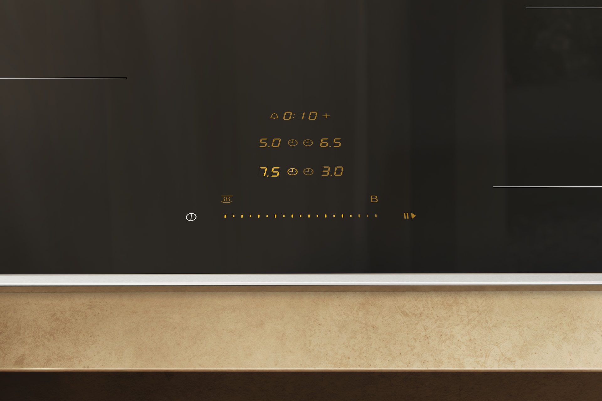 Un curseur central vous donne une vue d’ensemble de toutes les zones de cuisson et de tous les niveaux de puissance et vous permet de les contrôler avec précision.