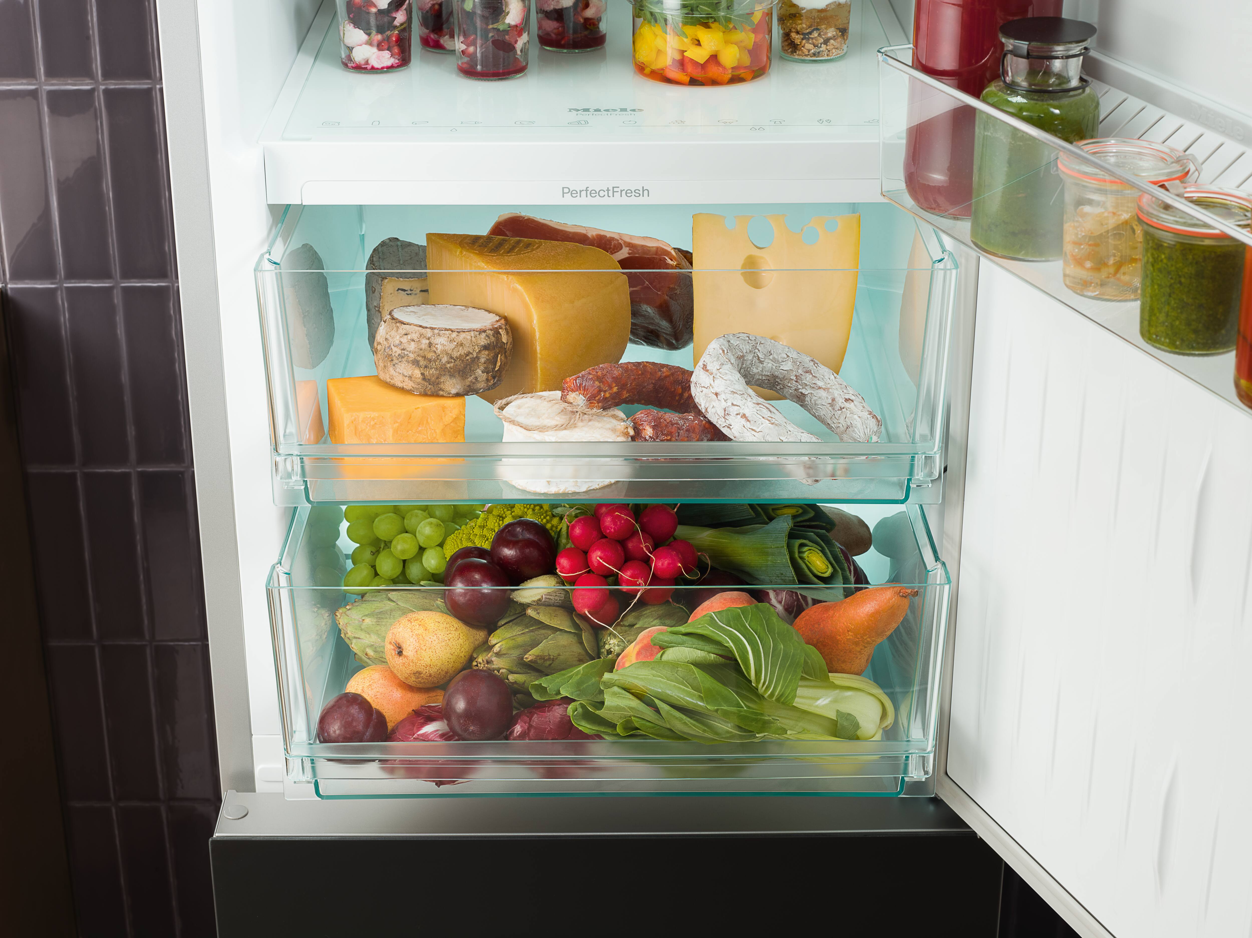 De Miele vershoudsystemen garanderen perfecte koelomstandigheden en houden voedingsmiddelen zo tot wel 5 keer langer vers. Dit zorgt voor een ideaal binnenklimaat, meer voorraad en meer combinatiemogelijkheden.
