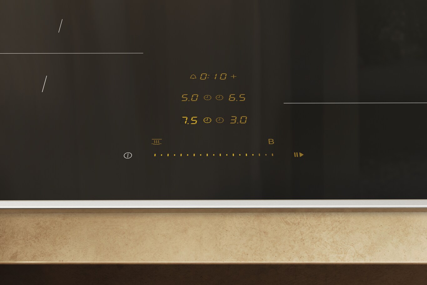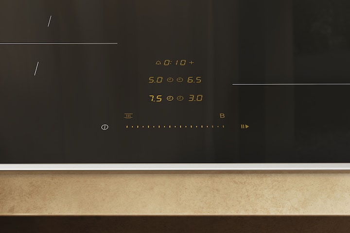 Een centrale schuifknop geeft u een overzicht van alle kookzones en vermogensstanden, zodat u ze nauwkeurig kunt regelen.