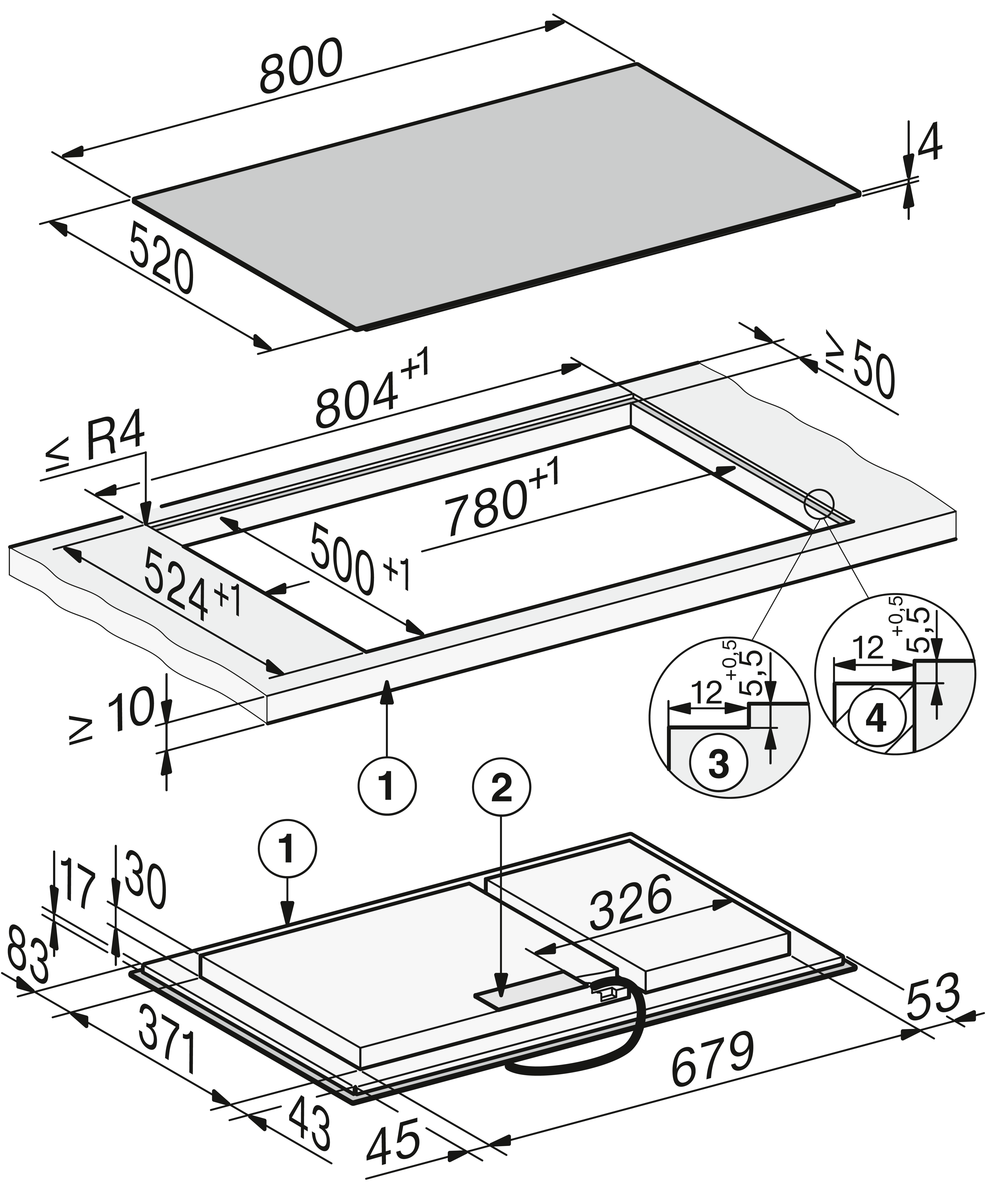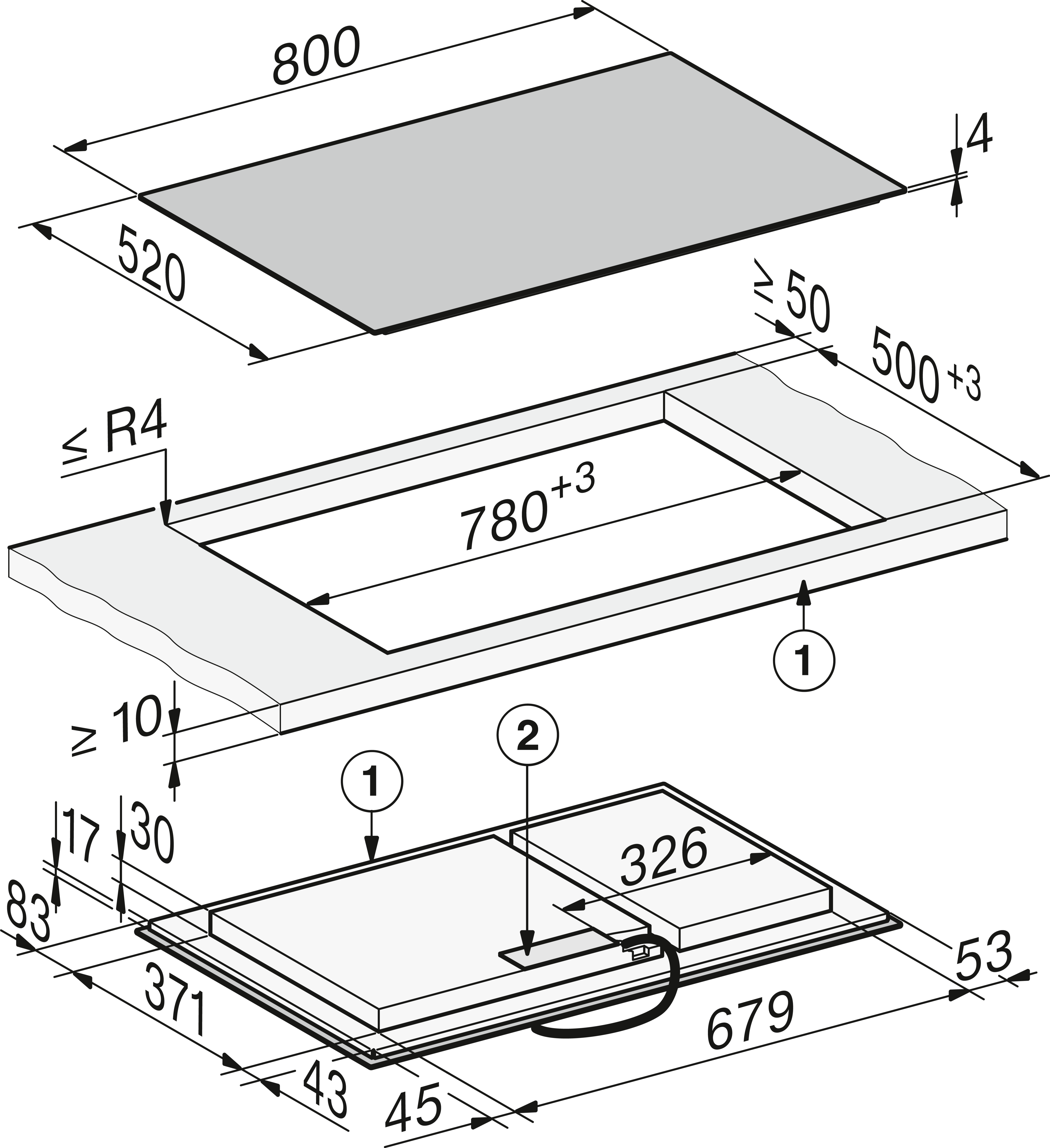 - In 800 mm breed voor opliggende of vlakke inbouw