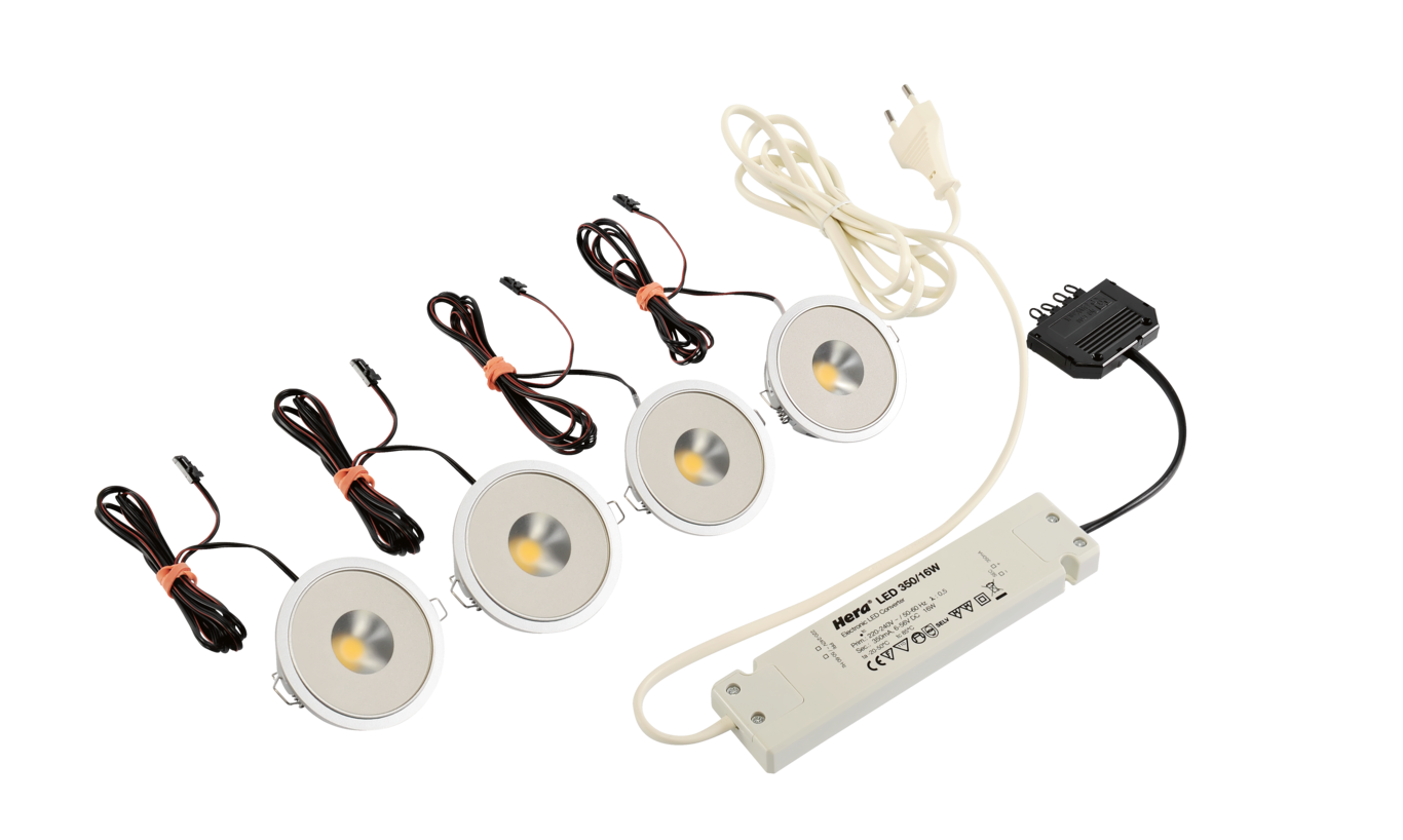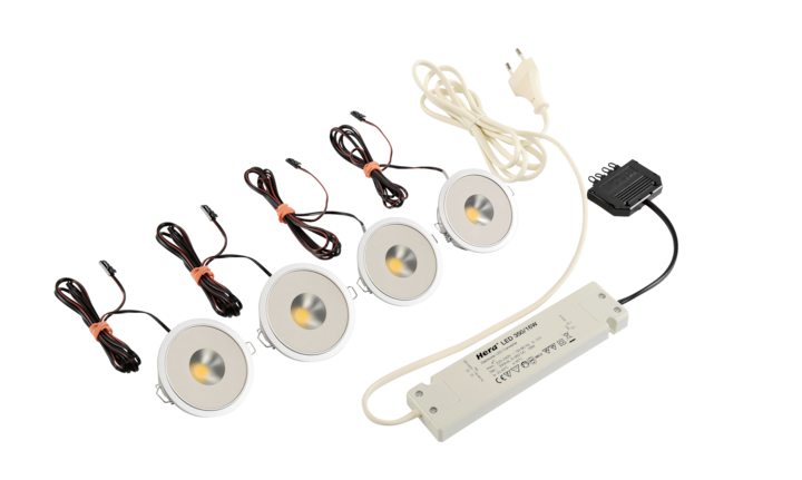 - Set bestaande uit vier led-lampen à 3 Watt (incl. transformator)